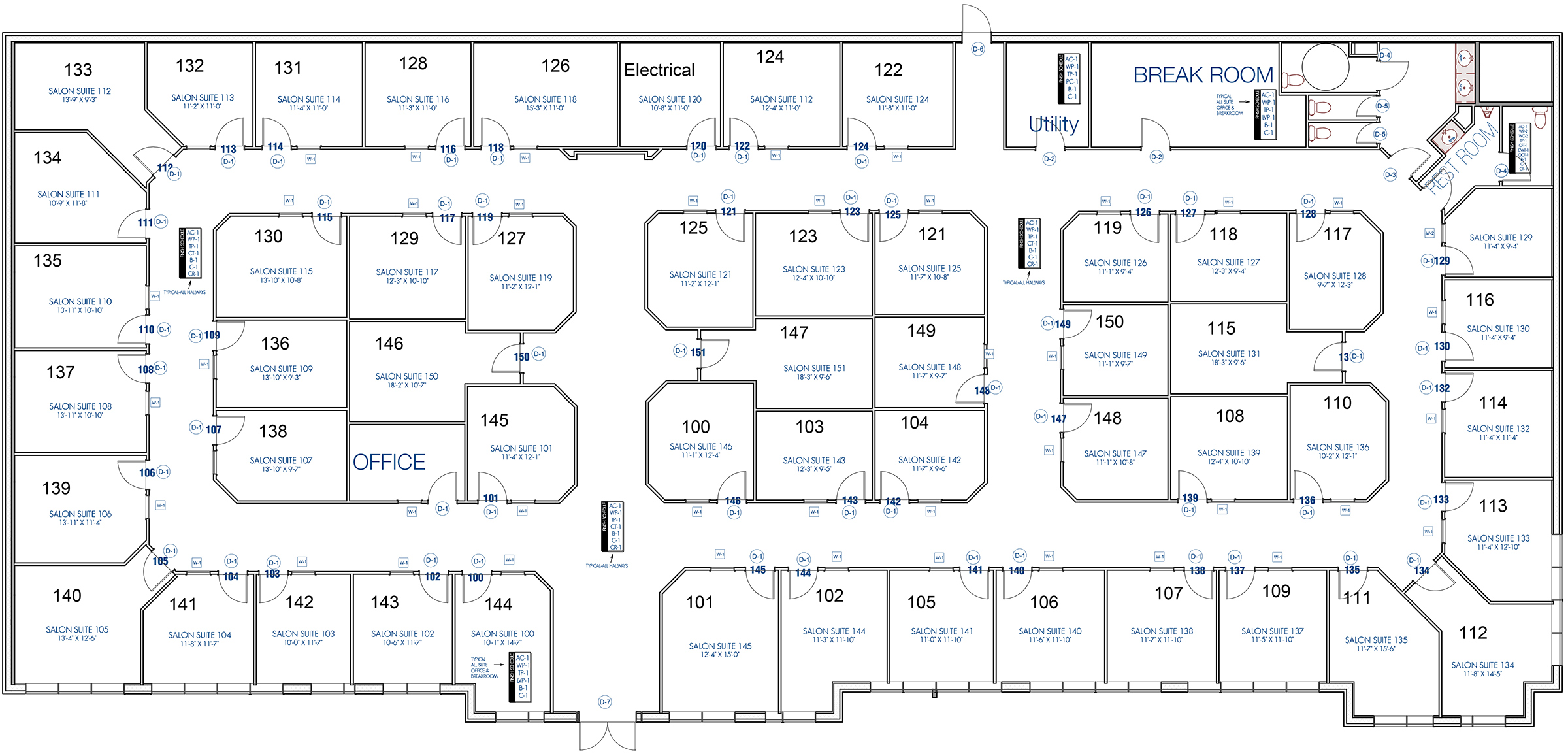Hairstylist suites include a Minerva Avant shampoo bowl and Minerva styling chair.